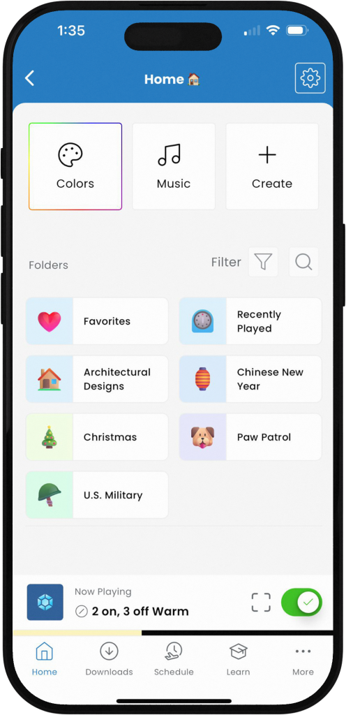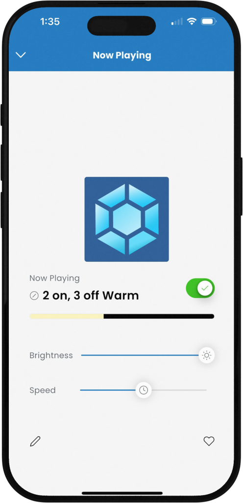 See exactly what’s playing on your home—instantly. The new “Now Playing” tab shows your active pattern and your recently used designs for quick access.