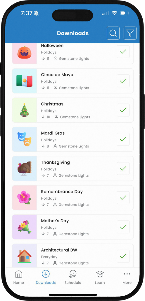 Check out the Management and Learn pages in the Gemstone Lights app to explore what’s new, discover helpful setup guides, and access easy‑to‑follow controls for all your lighting features.